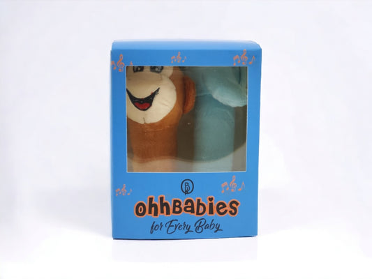 Yellow Lion With Pink Penguin Baby Rattle Toy